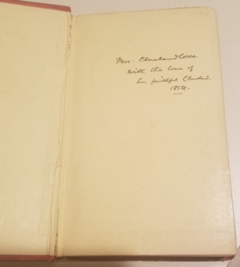 Mrs Cleveland Coxe, with the love of her faithful Cleveland, 1854.